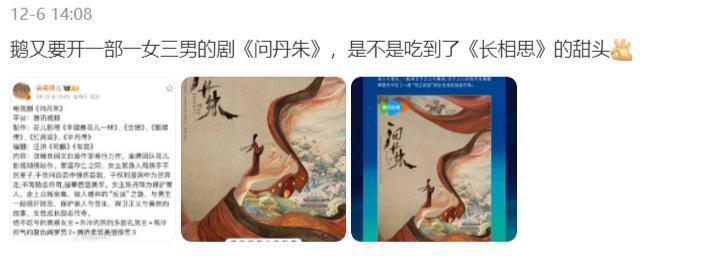 从这部剧的立意上看,《问丹朱》不仅是大女主电视剧,还是三男设置,看到这样的情况,很多网友都忍不住说:鹅应该是还想打造一部《长相思》,所以才选中《问丹朱》。